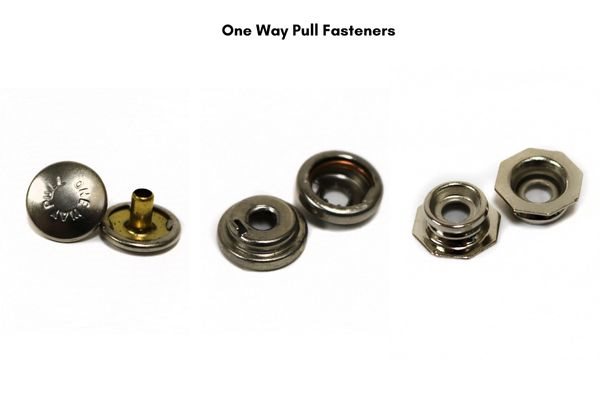 Also known as Pull-the-DOT fasteners, these are designed to release only when pulled in one specific direction. This makes them ideal for high-tension areas, as they can withstand force from three sides without coming undone. Installation requires careful alignment, but the result is a fastener that stays put, even in rough conditions. One Way fasteners are available in nickel-plated brass and are commonly used on boat enclosures and other marine gear.