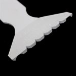 The quick nailer tool lets you set up to 5 nails at one time without damaging the furniture or your fingers. Simply load the large end of the the tool, making sure the nails are perpendicular and the shanks are flush with the base of the tool. Position the tunneled section of the tool over the last nail driven and begin setting nails. This tool creates a 1/2" spacing between the nails. The removal of the tool may require a twisting motion and/or pressure against nails head with free hand.