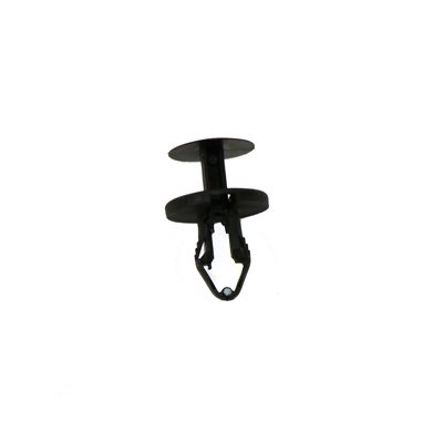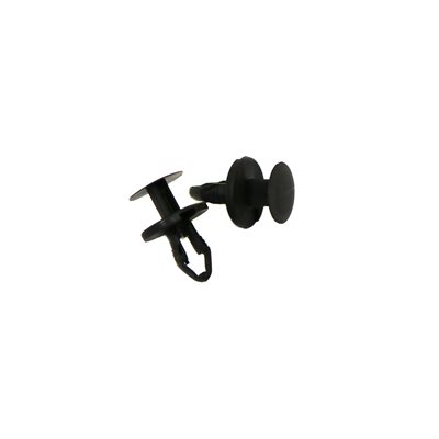 They work by pushing in the center pin which spreads the prongs. They are used for retaining bumper guards, various fascia, splash shields, shrouds, etc. While they are designed to be reusable, they are made of nylon and are usually destroyed in a collision. They are sometimes referred to as rivet retainers or drive-type retainers.
