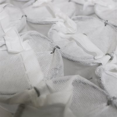 These spring cushion units can be used to build any size cushion by re-arranging segments of springs and hog ringing them together. Glue 1" foam to all sides and dacron wrap and stuff into cushion or wrap with several layers of cotton batting.