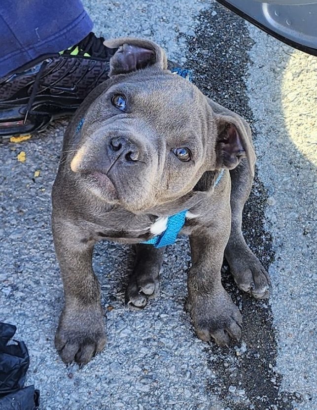 We have an American Bully named Blue who comes to work with us often.